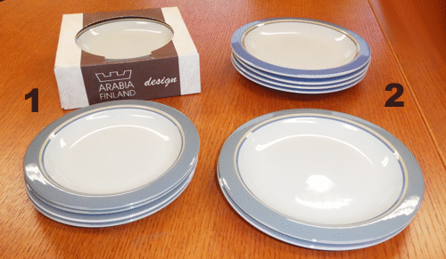 | 2. Tallrikar – "Kombi" Kati Tuominen-Niittylä / Inkero Leivo, Arabia. 2st Grå + 4st Blå. Diam: 21 cm |