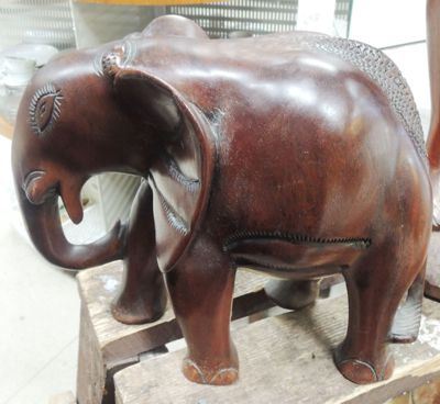 | Elefant i ädelträ med snidad dekor. Höjd: 23 cm |