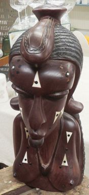 Kvinnobyst i ädelträ med snidad dekor och inläggningar. Höjd: 42 cm |