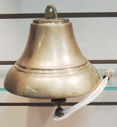 | Skeppsklocka i mässing. Höjd: 15 cm. Diam: 17 cm |