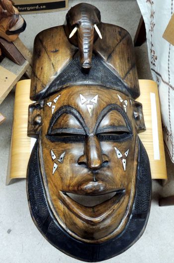 | Stor mask i trä med inläggningar. Stl: 35 x 70 cm |