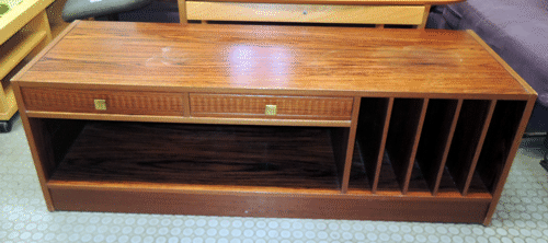 Vintage stereobänk med LP-fack. 1960/70-tal. Stl: 135 x 45 x 45 cm |