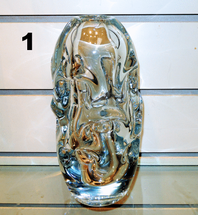 1. Vas - "Stubbe Vas" Börne Augutsson, Åseda Glasbruk. Klarglas. Höjd: 22 cm. Diam: 10 cm |