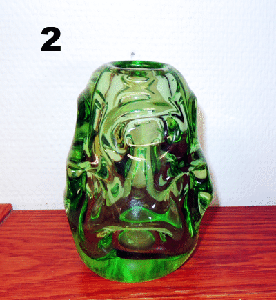 Grönt glas. Höjd: 12 cm. Diam: 8 cm |